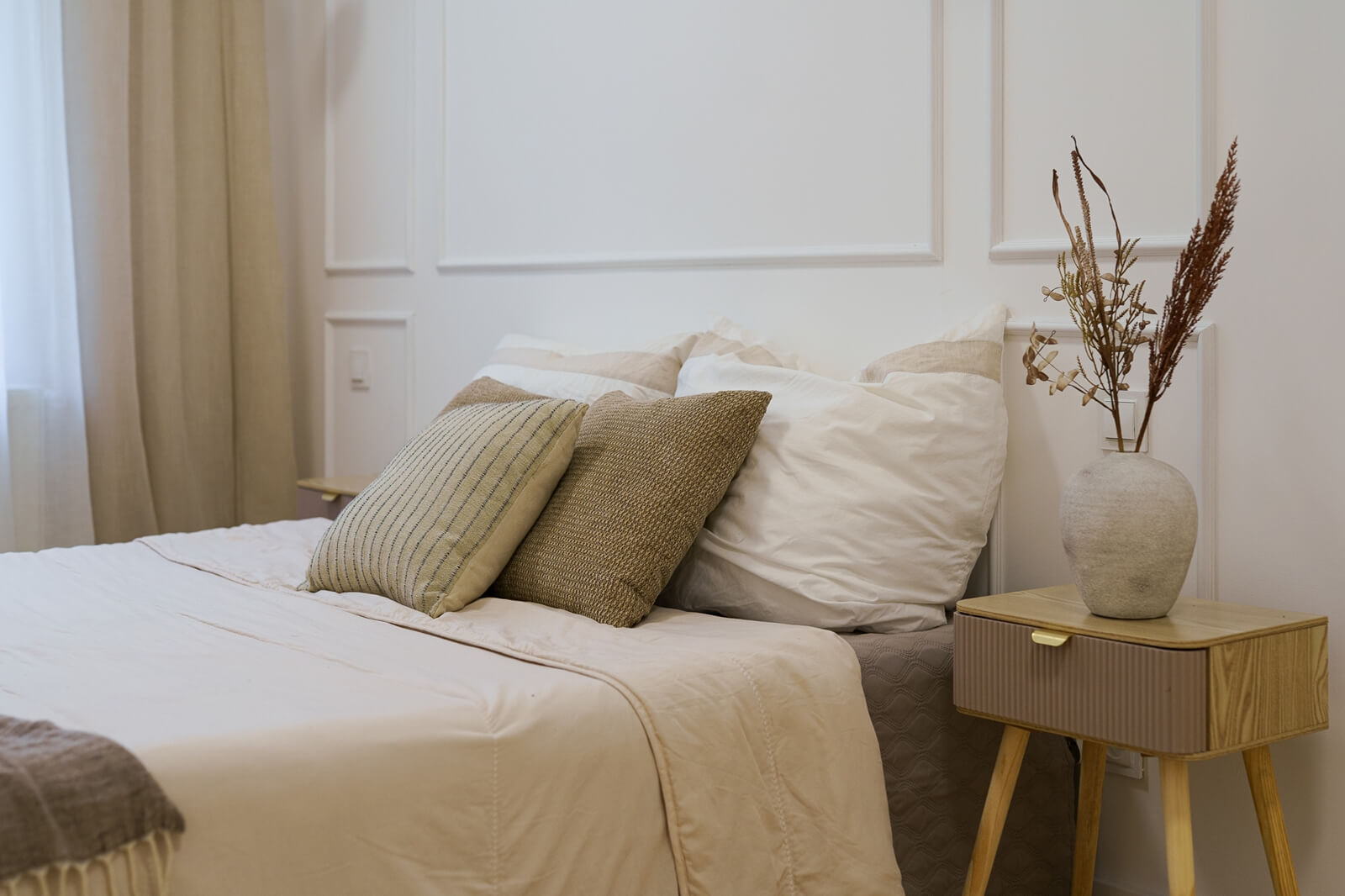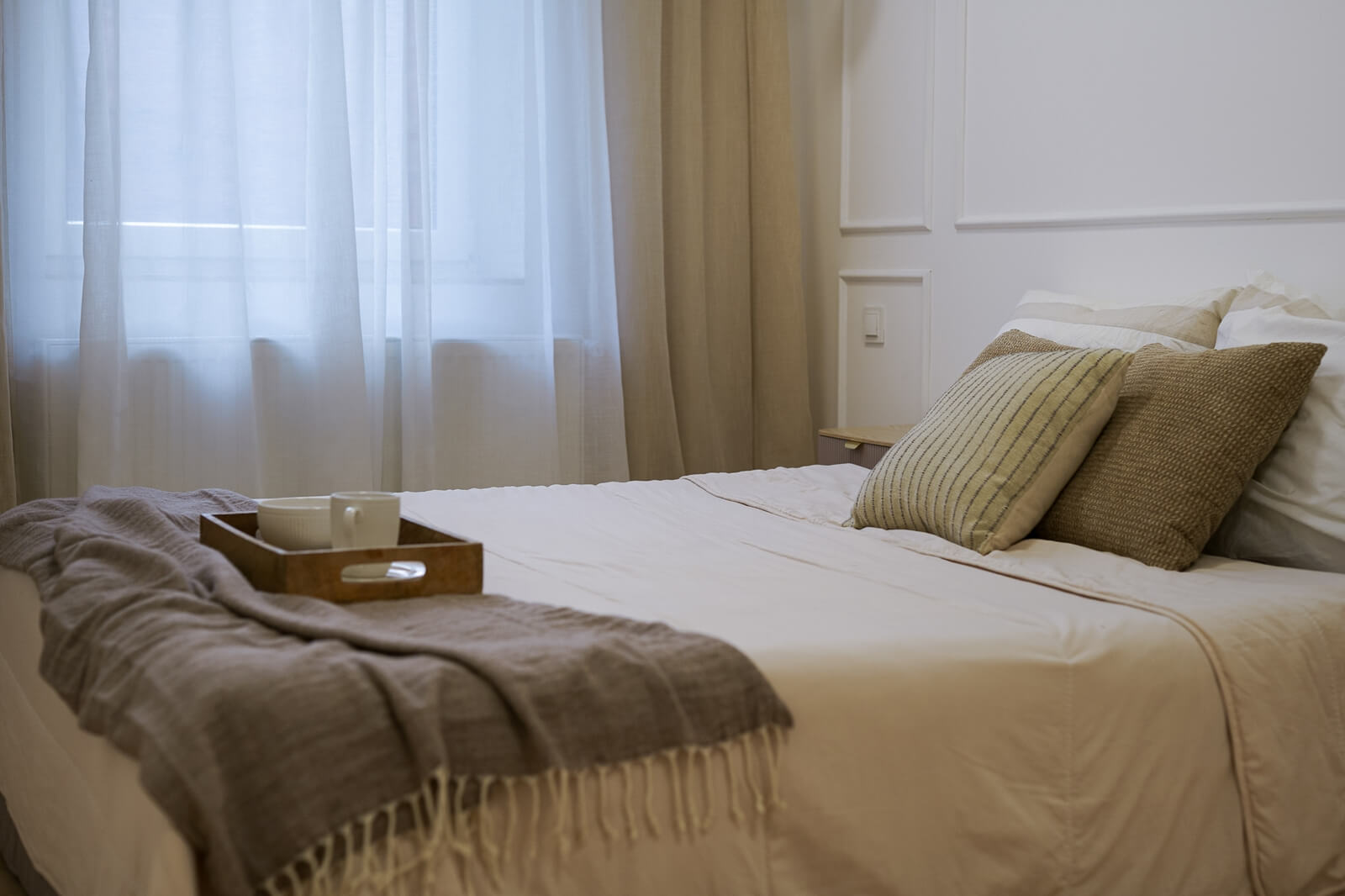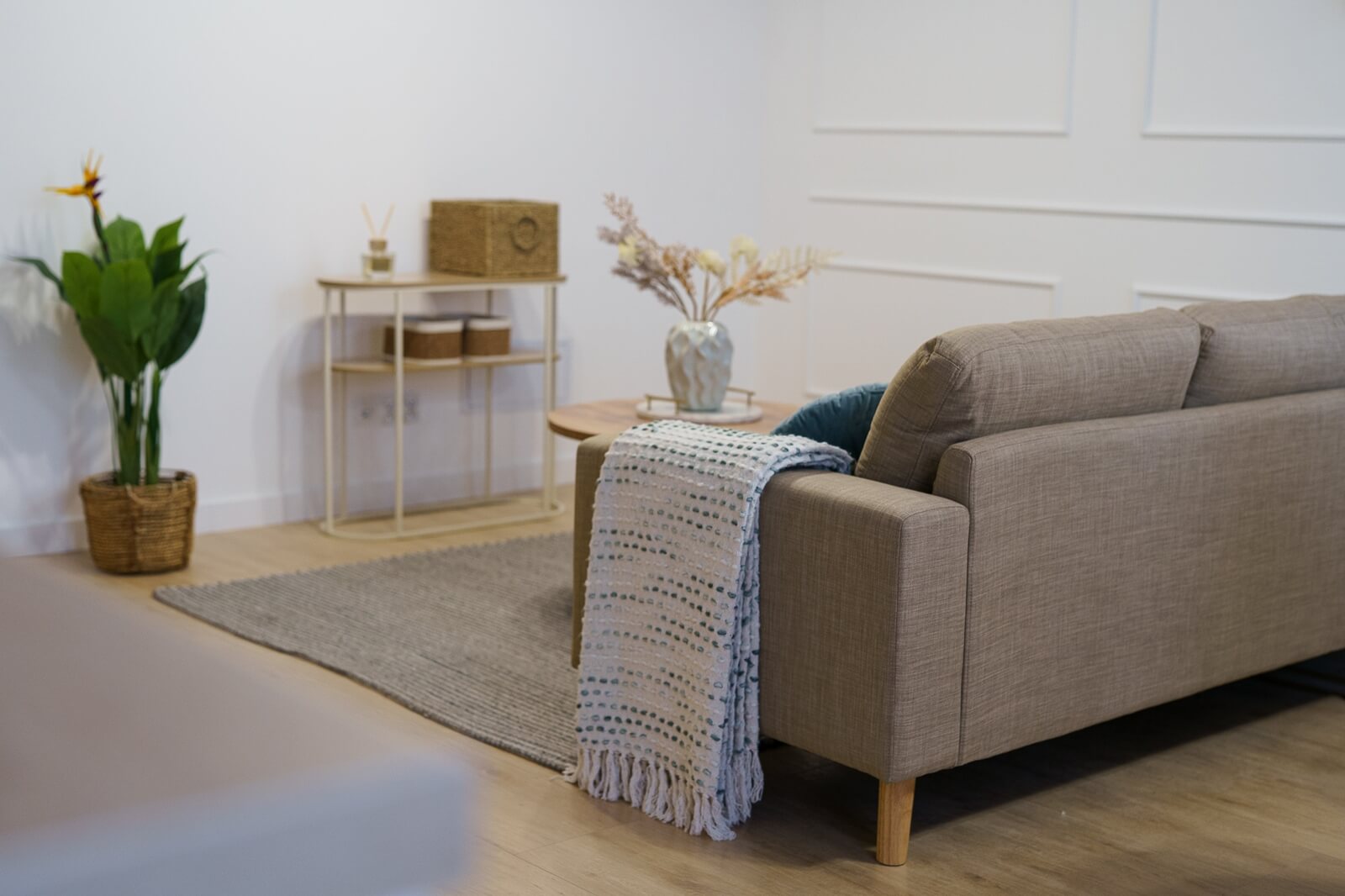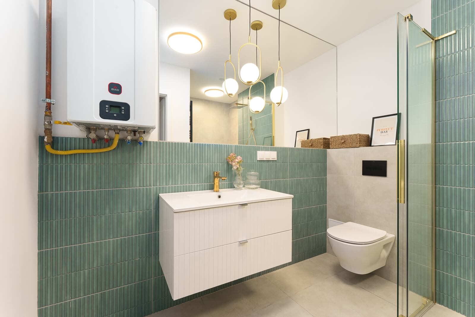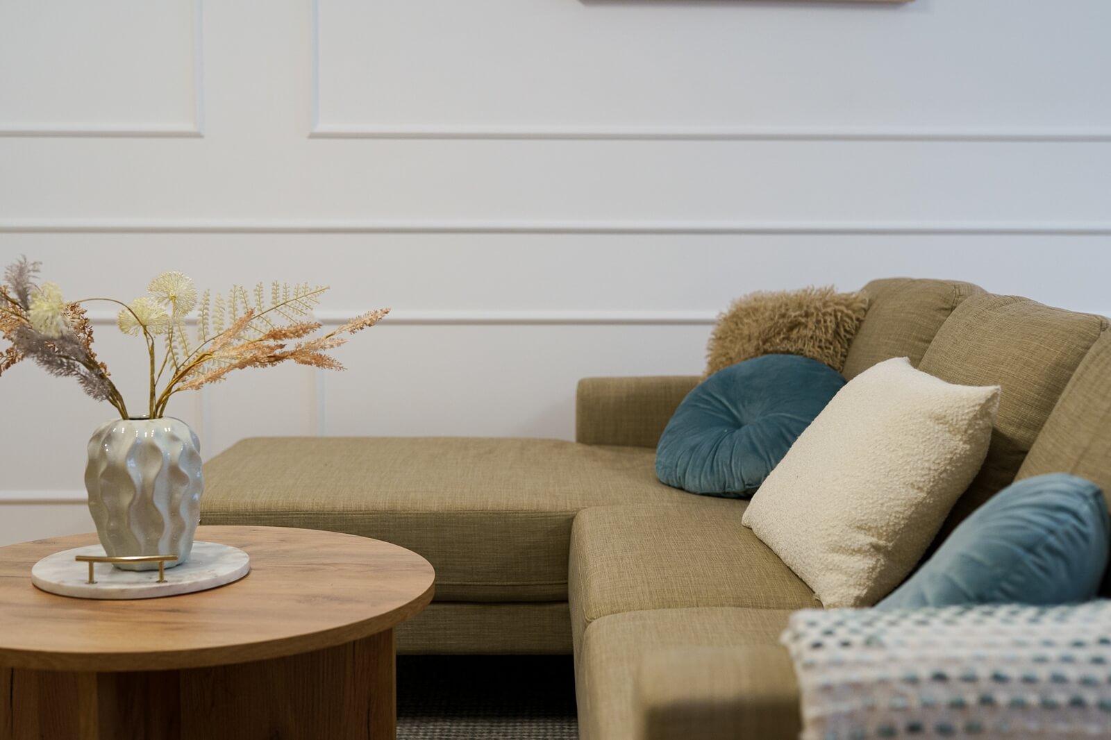 Salon z aneksem kuchennym, 2 sypialnie, łazienka, pralnia z suszarnią, przedpokój.